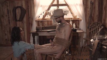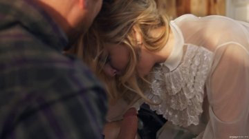 Super Pretty Blonde in White Lingerie and a Cowboy Hat Sucks His Cock and Takes It from Behind